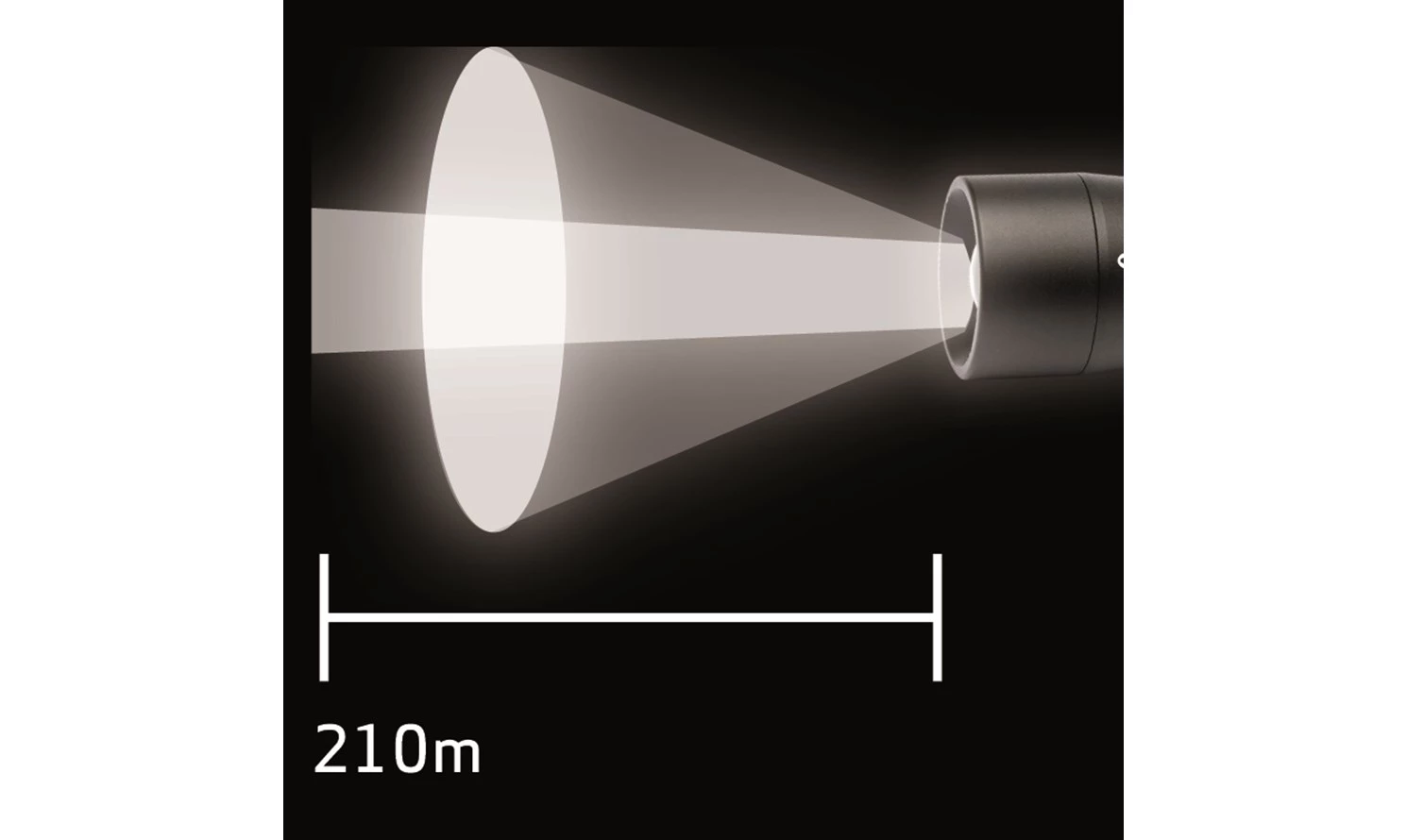 - Portée du faisceau de 210 mètres maximum.